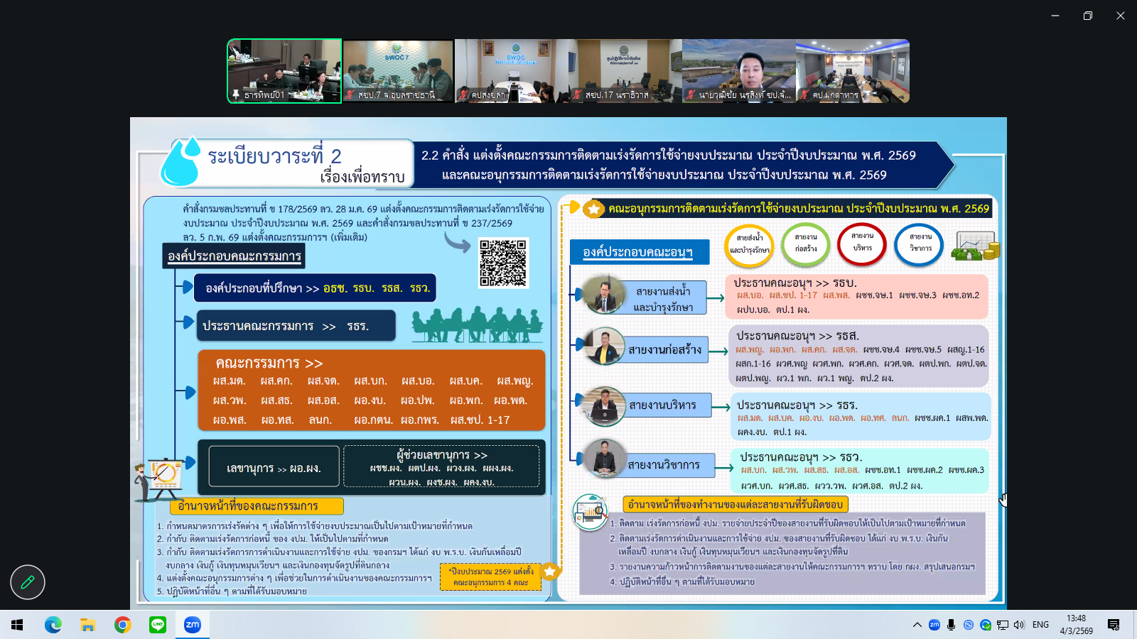 ผส.ชป.7 เป็นประธานการประชุมติดตามผลการดำเนินงานประจำปีงบประมาณ 2569 ครั้งที่ 3/2569 ผ่านระบบ Video Conference เน้นย้ำ ความก้าวหน้าการจัดซื้อจัดจ้าง และร่วมหาแนวทางแก้ไขปัญหาอุปสรรค เพื่อให้งานแล้วเสร็จตามเป้าหมายและกรอบเวลาของกรมชลประทาน