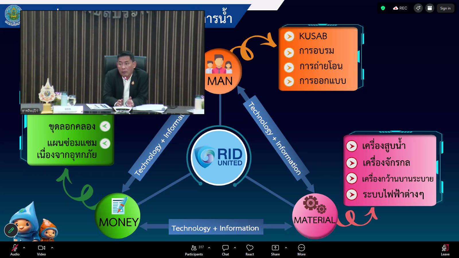 ในการนี้ สำนักงานชลประทานที่ 7 โดย นายปริญญา คัชมาตย์ ผู้อำนวยการสำนักงานชลประทานที่ 7 มอบหมายให้ นายเศรษฐพงศ์ ภิงคารวัฒน์ รองผู้อำนวยการสำนักงานชลประทานที่ 7 พร้อมด้วย ผู้อำนวยการส่วน หัวหน้าฝ่าย และเจ้าหน้าที่ผู้เกี่ยวข้อง เข้าร่วมการประชุมฯ ผ่านระบบ Zoom Meeting ณ ห้องประชุมเล็ก อาคารศูนย์ปฏิบัติการน้ำอัจฉริยะ สำนักงานชลประทานที่ 7 (SWOC 7) อำเภอเมือง จังหวัดอุบลราชธานี เพื่อร่วมติดตามผลการดำเนินงานตามนโยบายผู้บริหาร (RID UNITED) การเพิ่มประสิทธิภาพการบริหารจัดการน้ำ พร้อมทั้งติดตามเร่งรัดผลการดำเนินงานและเบิกจ่ายงบประมาณ ทุกแหล่งงบประมาณ ประจำปีงบประมาณ พ.ศ. 2569 และการขอตั้งงบประมาณรายจ่ายประจำปีงบประมาณ พ.ศ. 2570 ให้เป็นไปตามหลักเกณฑ์และระยะเวลาที่กำหนดไว้ต่อไป