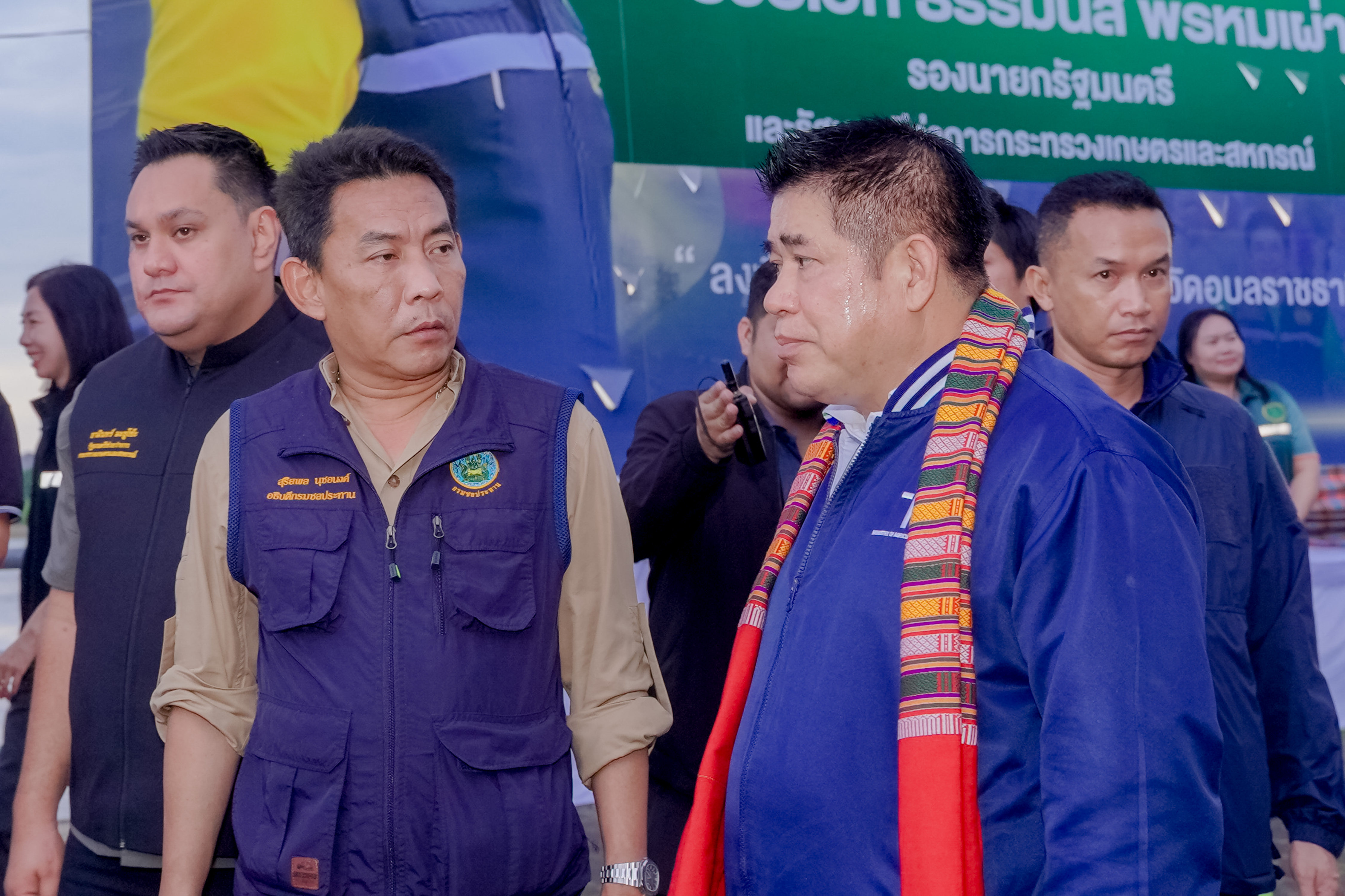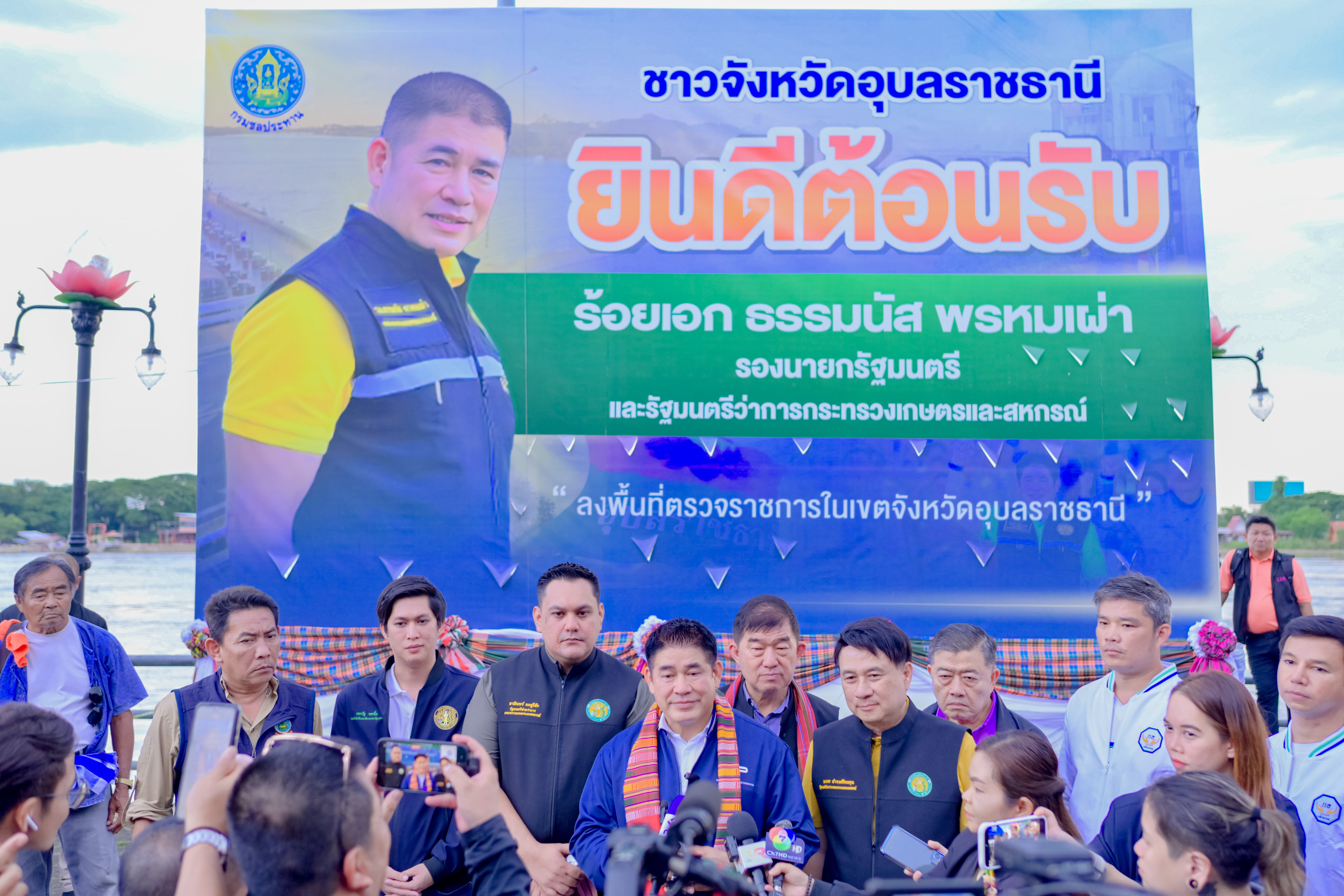 วันอังคารที่ 7 ตุลาคม 2568 ร้อยเอก ธรรมนัส พรหมเผ่า รองนายกรัฐมนตรี และรัฐมนตรีว่าการกระทรวงเกษตรและสหกรณ์ และคณะ ลงพื้นที่ติดตามสถานการณ์น้ำในพื้นที่จังหวัดอุบลราชธานี พร้อมพบปะพี่น้องประชาชน และมอบสิ่งของช่วยเหลือผู้ประสบอุทกภัย กว่า 2,000 ชุด โดยมี นายสุริยพล นุชอนงค์ อธิบดีกรมชลประทาน และคณะ พร้อมด้วย นายปริญญา คัชมาตย์ ผู้อำนวยการสำนักงานชลประทานที่ 7 นายเศรษฐพงศ์ ภิงคารวัฒน์ รองผู้อำนวยการสำนักงานชลประทานที่ 7 ผู้อำนวยการส่วน ผู้อำนวยการโครงการ และผู้เกี่ยวข้อง ร่วมลงพื้นที่และรายงานสถานการณ์น้ำ