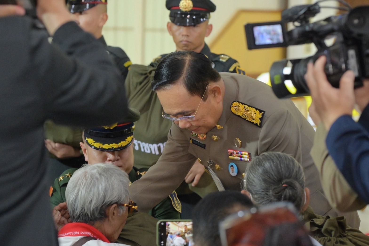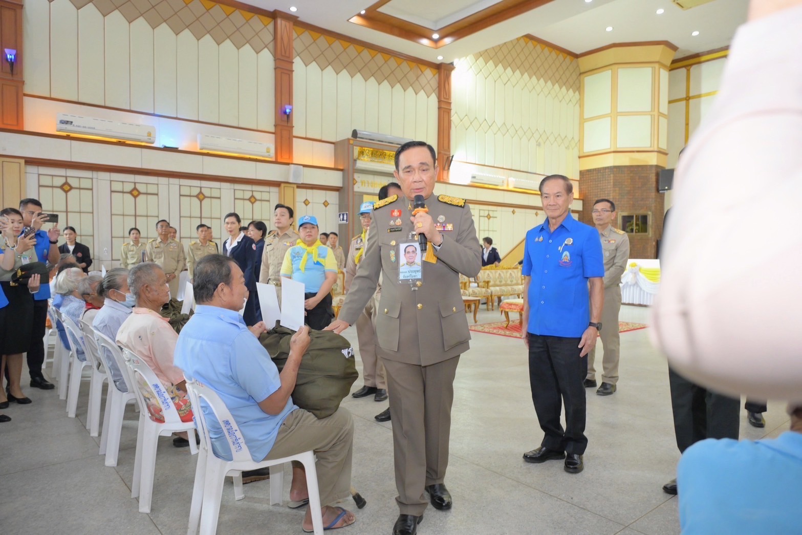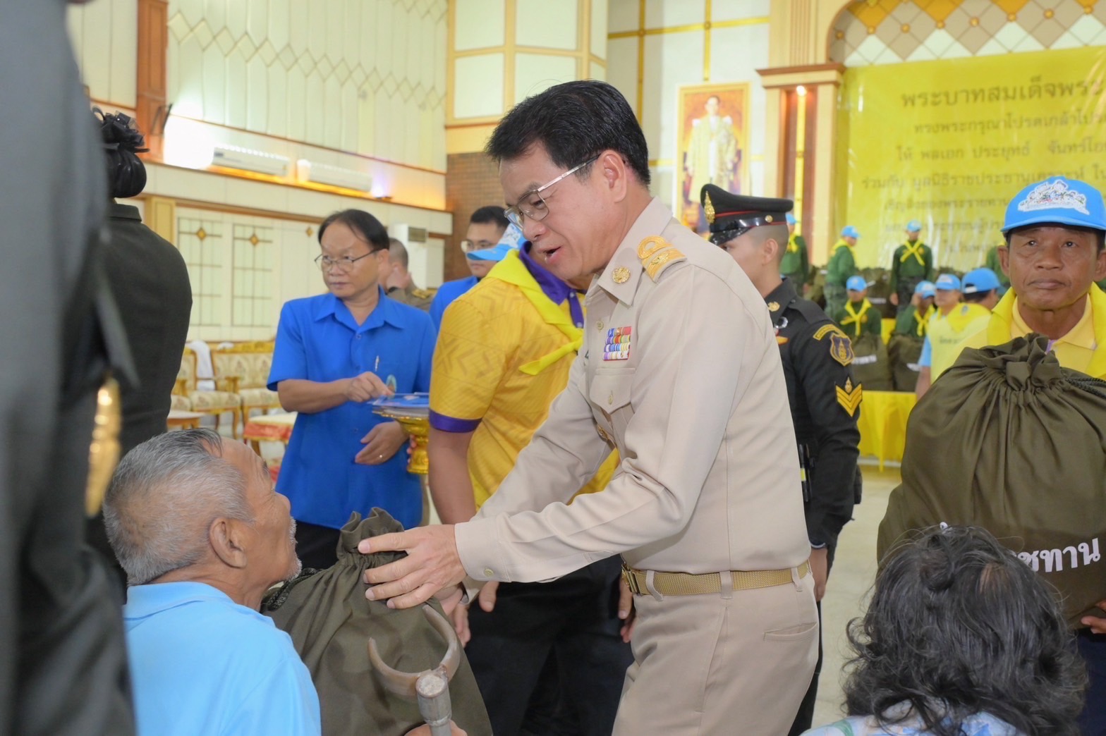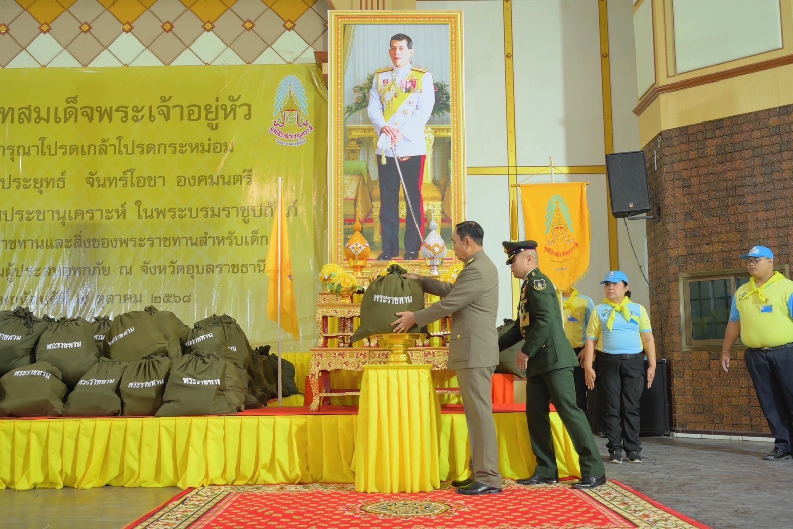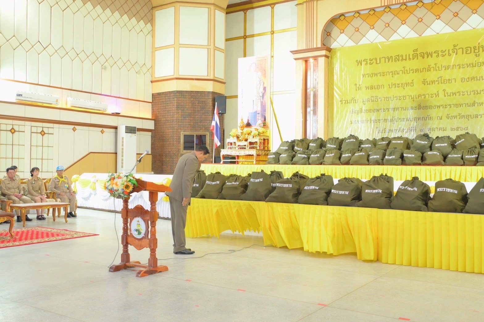 หลังจากนั้น องคมนตรี และคณะ ได้มอบสิ่งของพระราชทาน และสิ่งของพระราชทานสำหรับเด็กในพื้นที่จังหวัดอุบลราชธานี ร่วมกับ มูลนิธิราชประชานุเคราะห์ ในพระบรมราชูปถัมภ์ จำนวน 2,497 ชุด สิ่งของพระราชทานสำหรับเด็ก จำนวน 20 ชุด และมอบสิ่งของพระราชทานแก่ประชาชนในพื้นที่อำเภอวารินชำราบ จำนวน 3 ชุด และพบปะราษฎรในพื้นที่ พร้อมรับฟังความคิดเห็น และนำข้อมูลไปประกอบการพัฒนาให้ราษฎรในพื้นที่มีความเป็นอยู่ที่ดีขึ้นต่อไป