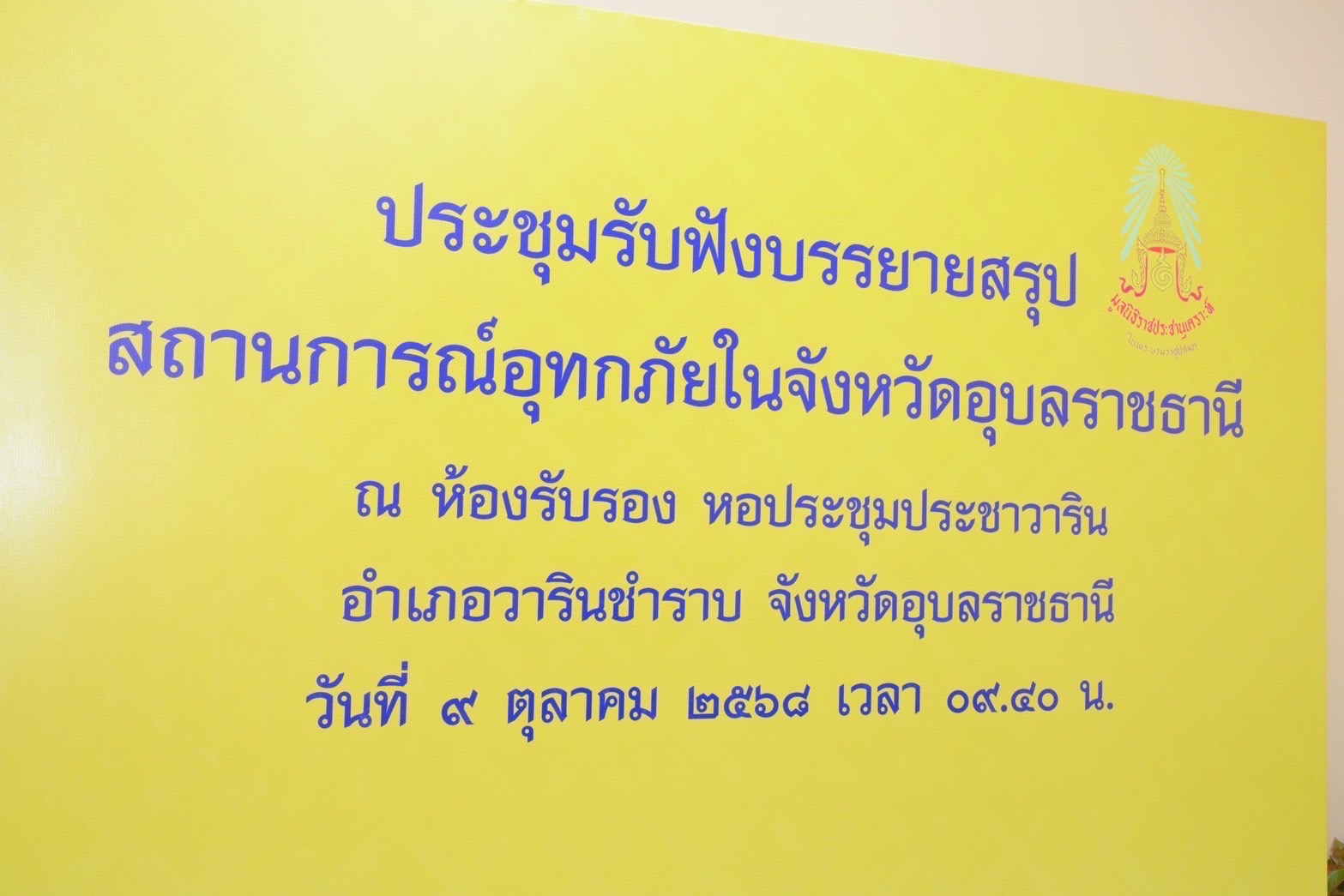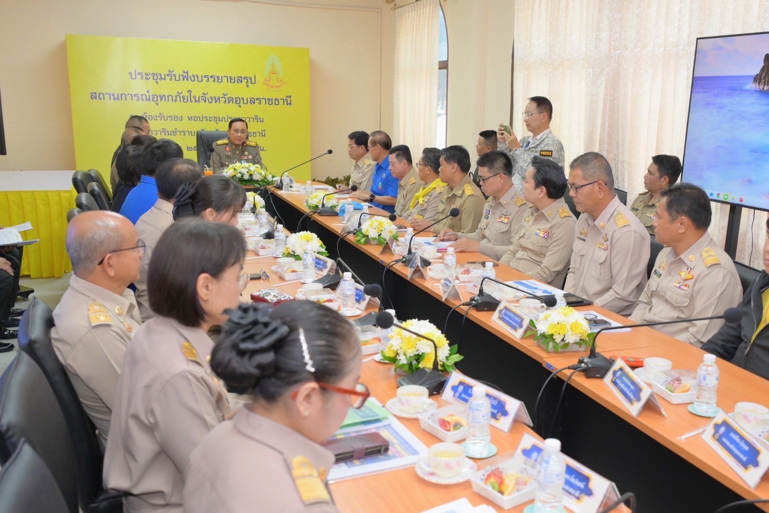วันพฤหัสบดีที่ 9 ตุลาคม 2568 เวลา 09.40 น. พลเอก ประยุทธ์ จันทร์โอชา องคมนตรี เป็นประธาน การประชุมติดตามสถานการณ์อุทกภัยในพื้นที่จังหวัดอุบลราชธานี โดยมี นายชำนาญ ชื่นตา ผู้ว่าราชการจังหวัดอุบลราชธานี พร้อมด้วย ข้าราชการ และผู้แทนจากหน่วยงานที่ผู้เกี่ยวข้อง เข้าร่วมประชุมฯ ณ ห้องประชุมศาลาประชาวาริน อำเภอวารินชำราบ จังหวัดอุบลราชธานี