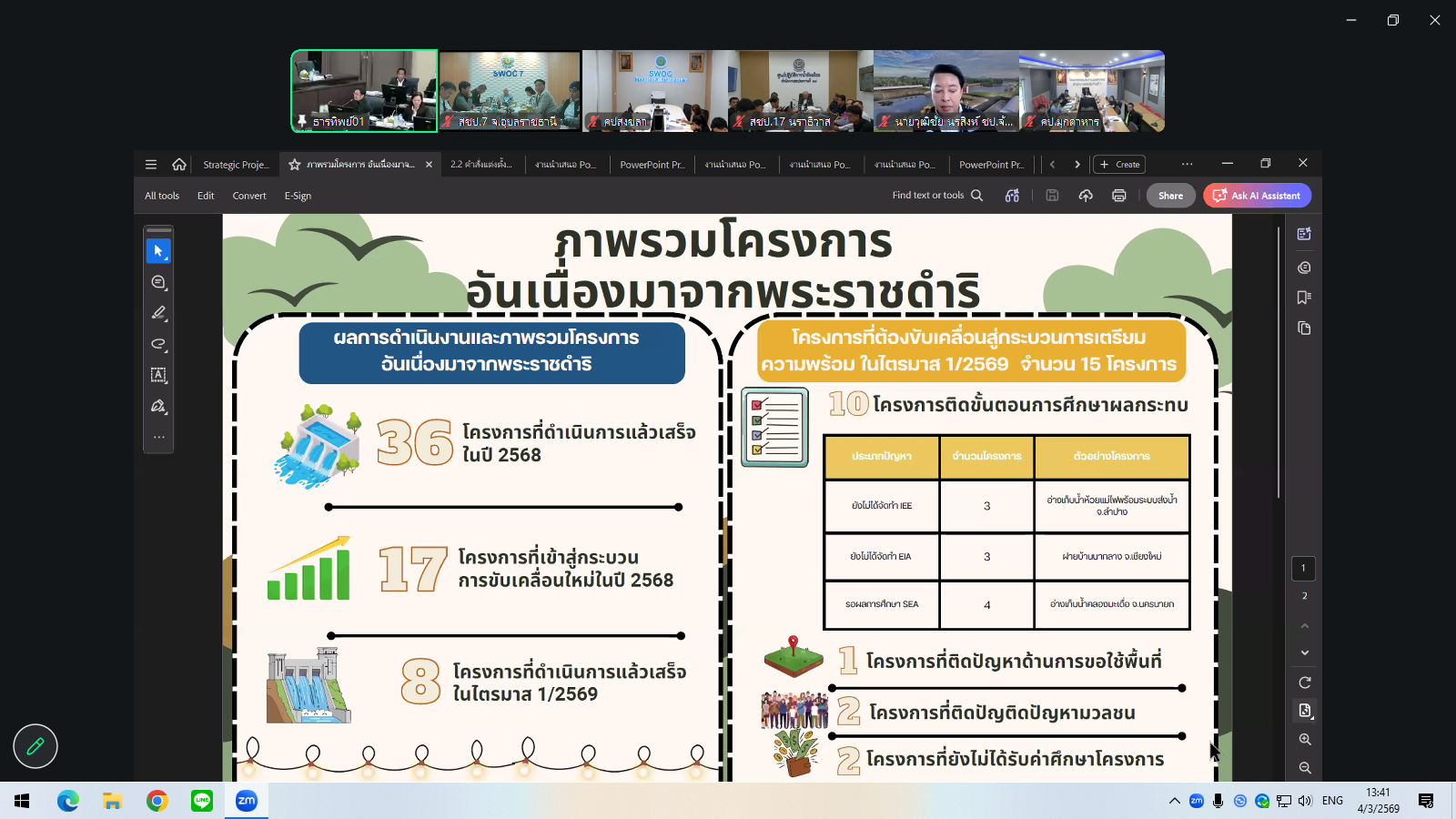 ผส.ชป.7 มอบหมายส่วนแผนงาน เข้าร่วมประชุมเตรียมความพร้อมรับองคมนตรี ผ่านระบบ Zoom Meeting เพื่อติดตามและขับเคลื่อนโครงการอันเนื่องมาจากพระราชดำริ พื้นที่ลุ่มน้ำยัง จังหวัดกาฬสินธุ์ และจังหวัดร้อยเอ็ด มุ่งเตรียมข้อมูลและสถานที่ให้เป็นไปด้วยความเรียบร้อย
