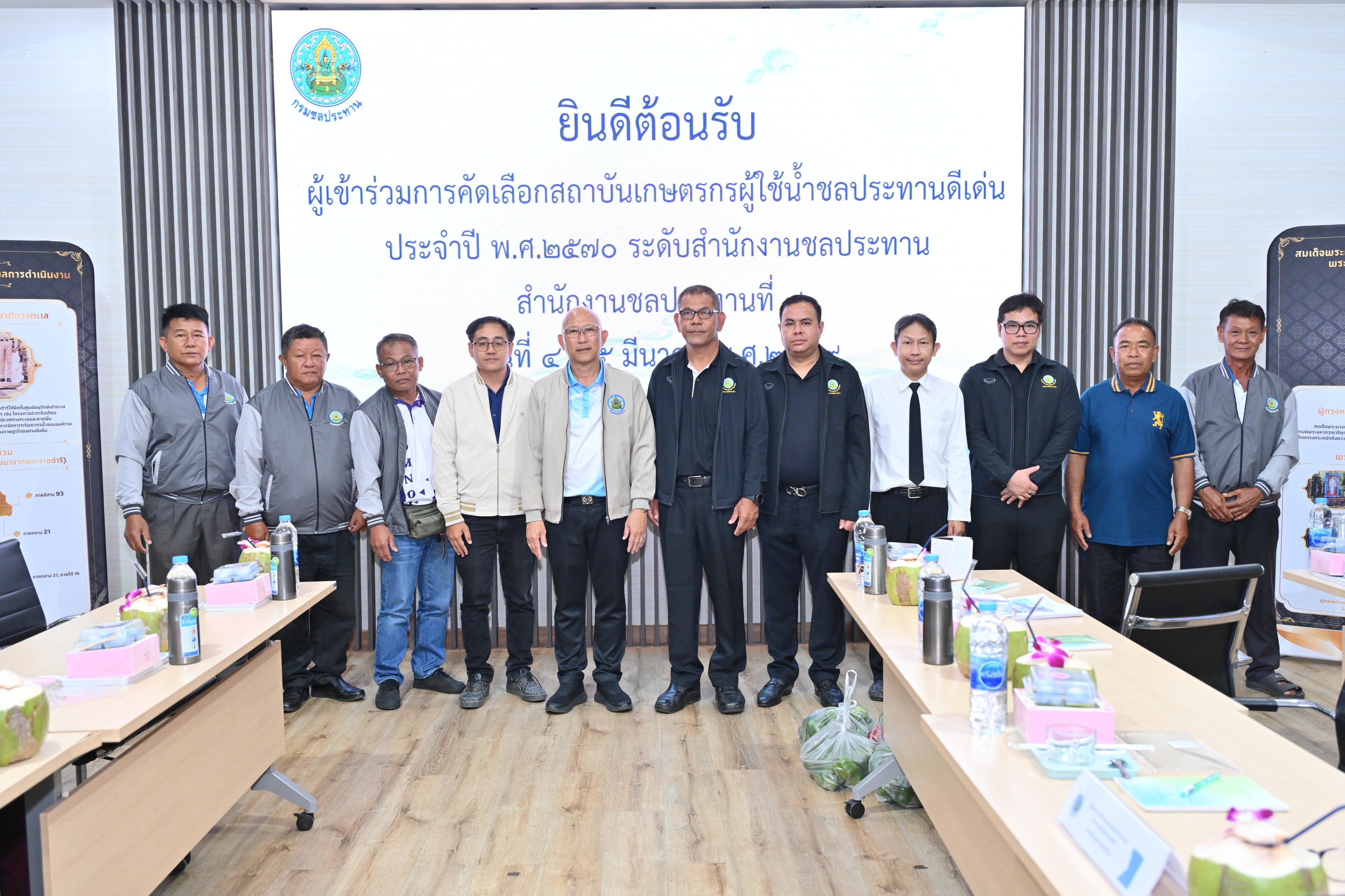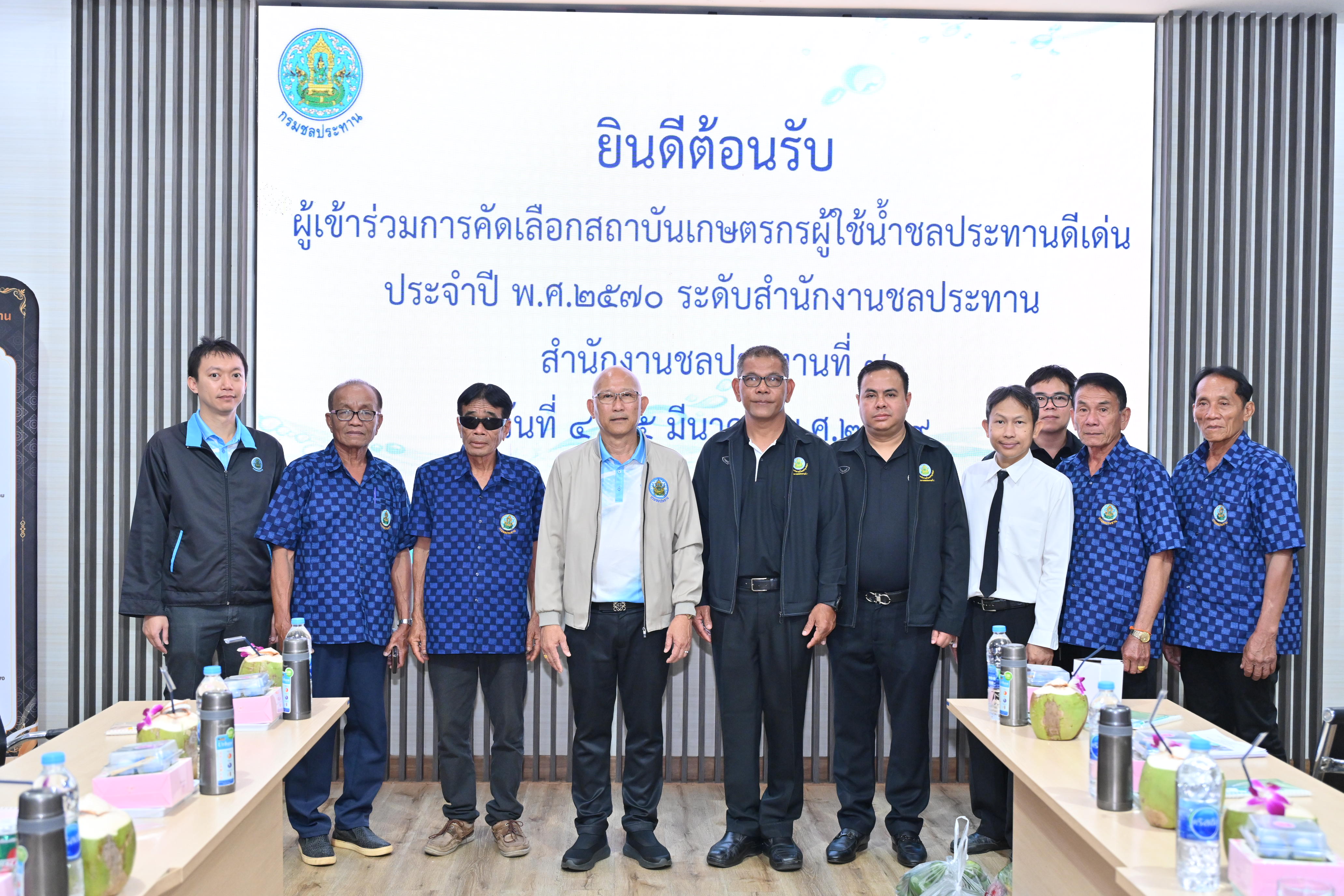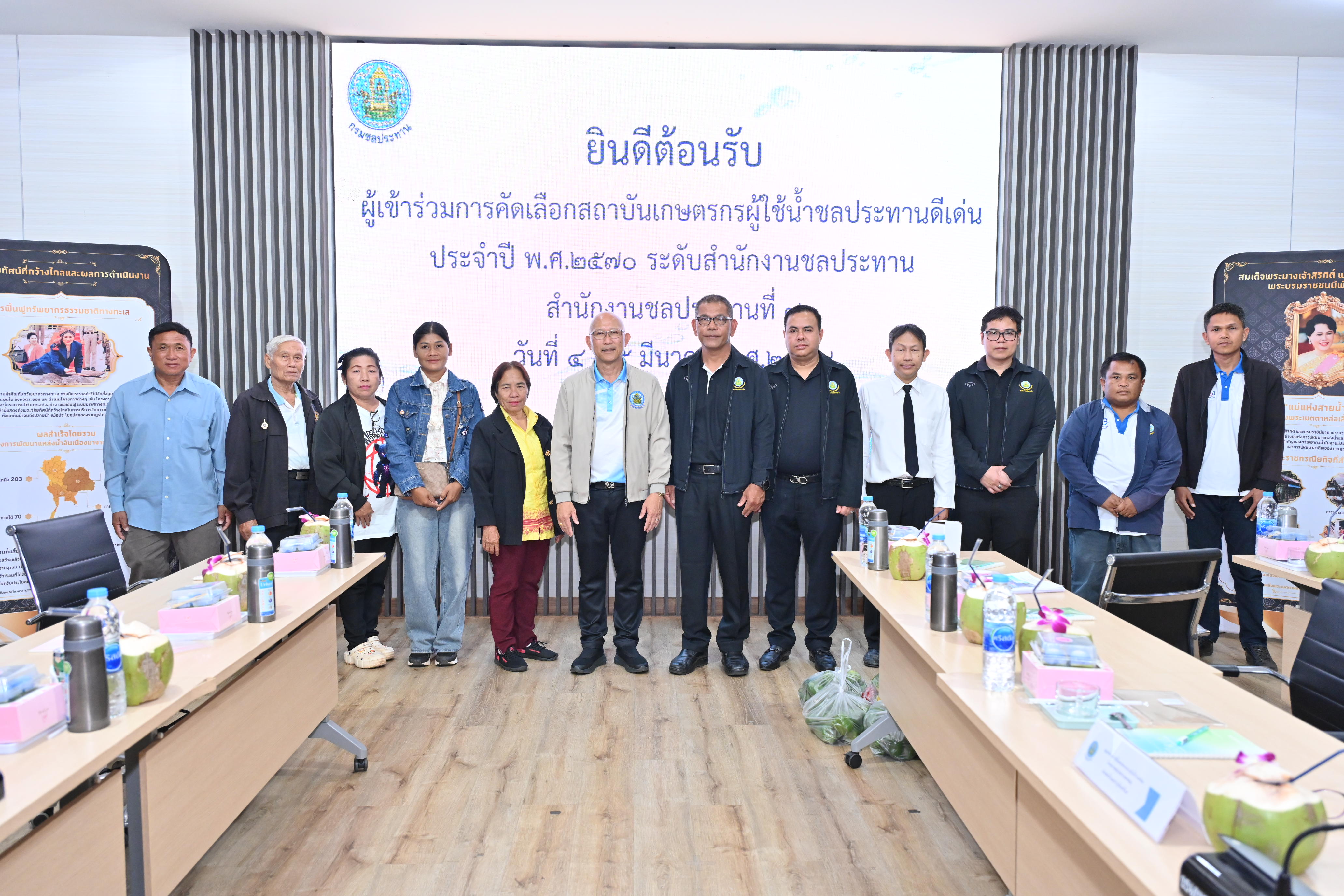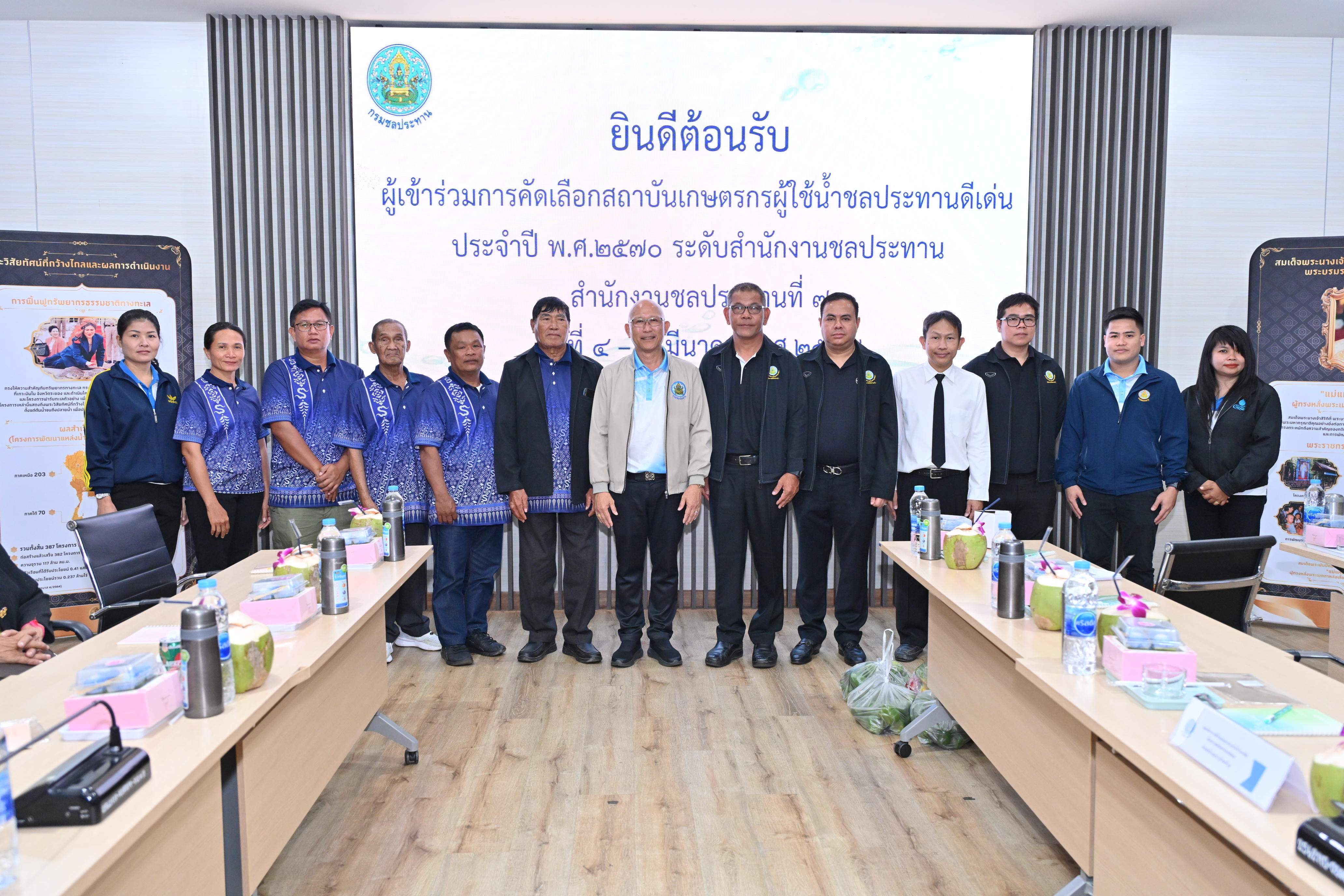 วันพุธที่ 4 มีนาคม 2569 สำนักงานชลประทานที่ 7 ดำเนินการคัดเลือกสถาบันเกษตรกรผู้ใช้น้ำชลประทานดีเด่น ประจำปี 2570 โดย นายปริญญา คัชมาตย์ ผู้อำนวยการสำนักงานชลประทานที่ 7 มอบหมายให้ นายเศรษฐพงศ์ ภิงคารวัฒน์ รองผู้อำนวยการสำนักงานชลประทานที่ 7 พร้อมด้วย ผู้อำนวยการส่วน หัวหน้าฝ่าย และเจ้าหน้าที่ผู้เกี่ยวข้อง ดำเนินการประเมินคัดเลือกสถาบันเกษตรกรผู้ใช้น้ำชลประทานดีเด่น เพื่อเป็นตัวแทน ระดับสำนักงานชลประทาน 7 ประจำปี 2570 ซึ่งจัดขึ้นในระหว่างวันที่ 4 - 5 มีนาคม 2569 โดยก่อนเริ่มประเมินฯ ได้มีกิจกรรมกลุ่มสัมพันธ์ เพื่อสร้างความคุ้นเคยให้กับสถาบันเกษตรกรผู้ใช้น้ำดีเด่น ในการนี้ ได้มีกำหนดการนำเสนอโดยกลุ่มบริหารการใช้น้ำฯ ดังนี้
