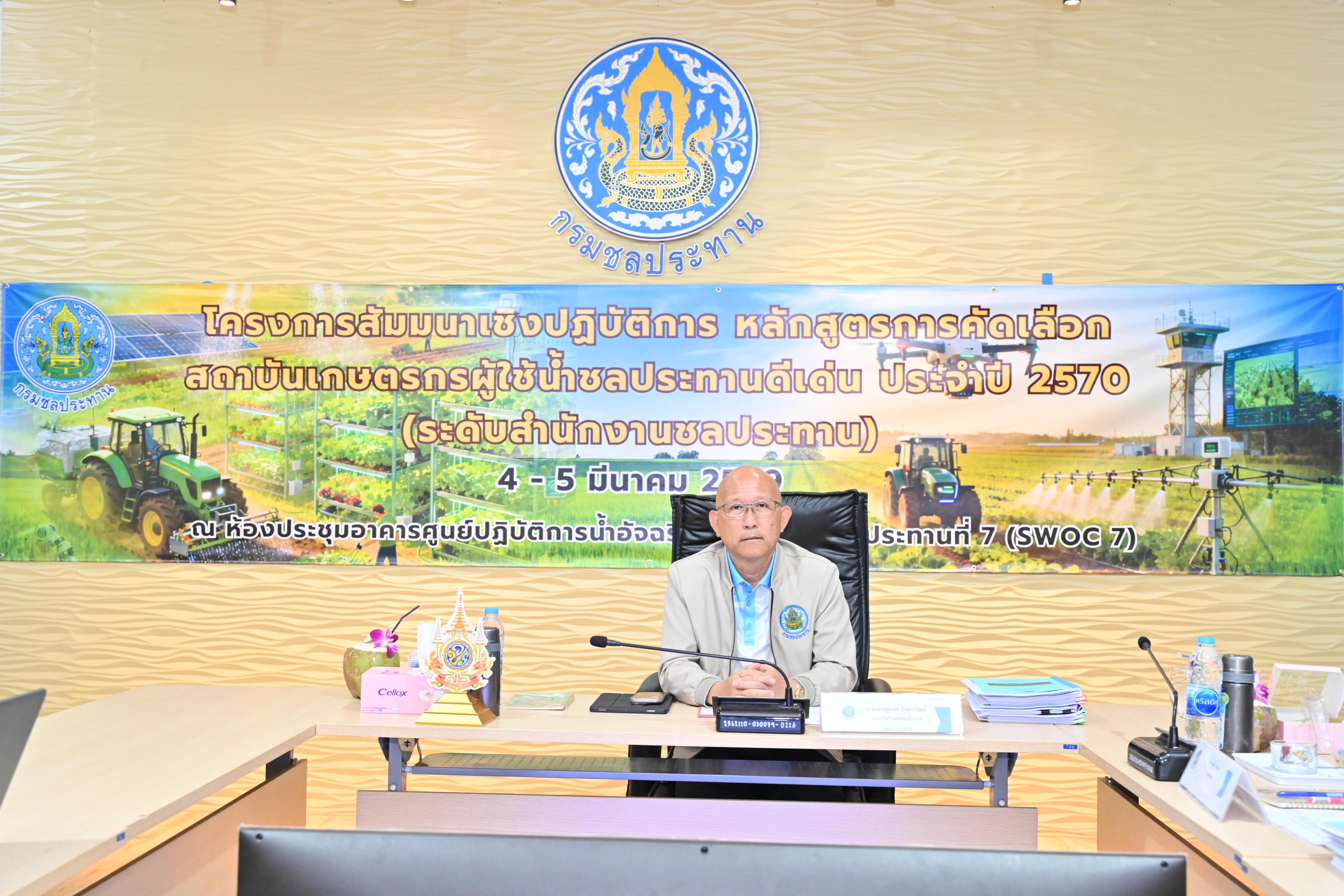 ทั้งนี้ เพื่อให้การประเมินคัดเลือกสถาบันเกษตรกรผู้ใช้น้ำชลประทานดีเด่น ประจำปี 2570 เป็นไปด้วยความเรียบร้อยต่อไป ณ ห้องประชุมอาคารศูนย์ปฏิบัติการน้ำอัจฉริยะ สำนักงานชลประทานที่ 7 (SWOC 7) อำเภอเมือง จังหวัดอุบลราชธานี