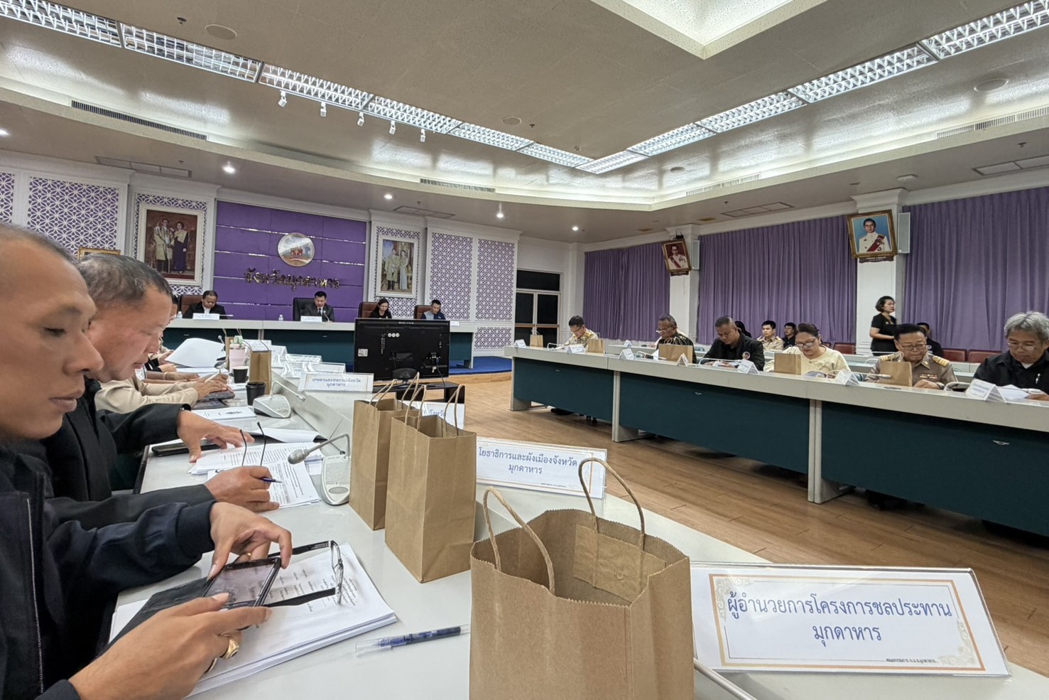 วันจันทร์ที่ 16 มีนาคม พ.ศ. 2569 เวลา 13.30 น. นายทศพล บัวผัน ผู้อำนวยการโครงการชลประทานมุกดาหาร สำนักงานชลประทานที่ 7 มอบหมายให้ นางสาวปิ่นมณี พรหมอารักษ์ วิศวกรชลประทานปฏิบัติการ เข้าร่วมประชุมคณะกรรมการบริหารงานจังหวัดแบบบูรณาการจังหวัดมุกดาหาร (ก.บ.จ.มุกดาหาร) ครั้งที่ 1/2569 โดยมี นายวรญาณ บุญณราช ผู้ว่าราชการจังหวัดมุกดาหาร เป็นประธาน เพื่อพิจารณาผลการเบิกจ่ายงบประมาณโครงการตามแผนปฏิบัติราชการประจำปีงบประมาณ พ.ศ. 2569 การปรับปรุงและเปลี่ยนแปลงโครงการของจังหวัดและกลุ่มจังหวัด รวมทั้งทบทวนเป้าหมายการพัฒนาจังหวัดมุกดาหารระยะ 20 ปี ณ ห้องประชุมแก้วกินรี ชั้น 5 ศาลากลางจังหวัดมุกดาหาร
