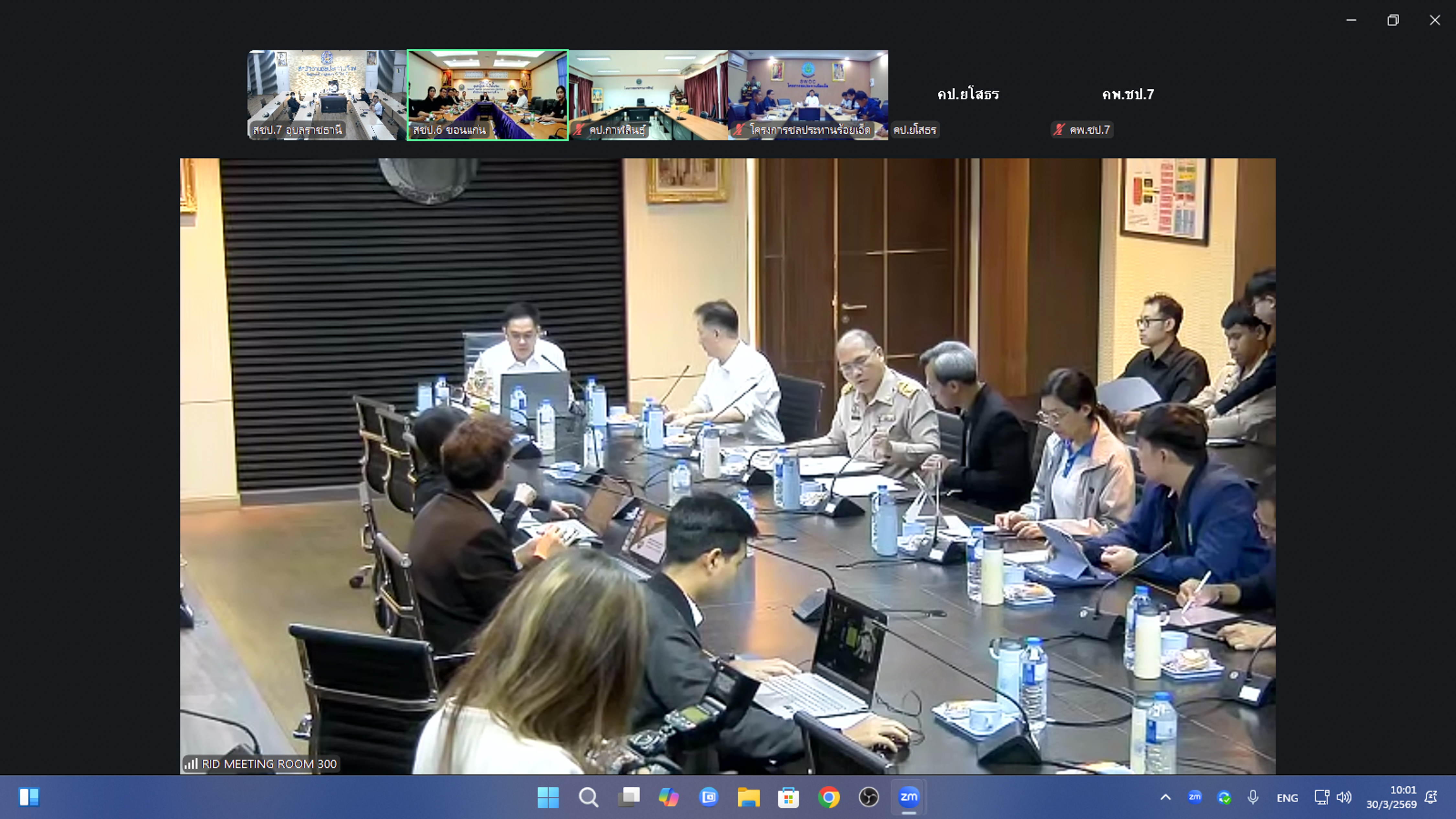 วันจันทร์ที่ 30 มีนาคม 2569 เวลา 10.00 น. สำนักงานชลประทานที่ 7 โดย นายปริญญา คัชมาตย์ ผู้อำนวยการสำนักงานชลประทานที่ 7 มอบหมายให้ นายจักรฤทธิ์ ตรีนาจ ผู้อำนวยการส่วนแผนงาน พร้อมด้วย หัวหน้าฝ่าย และเจ้าหน้าที่ผู้เกี่ยวข้อง เข้าร่วมประชุมเตรียมความพร้อมรับองคมนตรี ติดตามและขับเคลื่อนโครงการอันเนื่องมาจากพระราชดำริพื้นที่ลุ่มน้ำยัง ในพื้นที่จังหวัดกาฬสินธุ์ และจังหวัดร้อยเอ็ด ผ่านระบบ Zoom Meeting โดยมี นายยงยส เนียมทรัพย์ ผู้ทรงคุณวุฒิด้านวิศวกรรมโยธา (ด้านวางแผนและโครงการ) เป็นประธานการประชุม เพื่อรับทราบและมอบหมายภารกิจ แนวทางการเตรียมความพร้อมด้านข้อมูลต่างๆ และสถานที่ ให้เป็นไปด้วยความเรียบร้อยต่อไป ณ ห้องประชุมอาคารศูนย์ปฏิบัติการน้ำอัจฉริยะ สำนักงานชลประทานที่ 7 (SWOC 7) อำเภอเมือง จังหวัดอุบลราชธานี