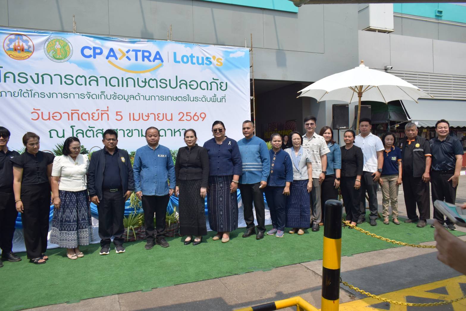 เมื่อวันอาทิตย์ที่ 5 เมษายน พ.ศ. 2569 เวลา 10.00 น. นายทศพล บัวผัน ผู้อำนวยการโครงการชลประทานมุกดาหาร สำนักงานชลประทานที่ 7 มอบหมายให้ นายศักดิ์ดา ธรรมปัทม์ เจ้าหน้าที่บันทึกข้อมูล เข้าร่วมพิธีเปิดโครงการตลาดเกษตรปลอดภัยและเยี่ยมชมพร้อมให้กำลังใจแก่เกษตรกรผู้จำหน่ายสินค้าเกษตร โดยมี นายไกร เอี่ยมจุฬา รองผู้ว่าราชการจังหวัดมุกดาหาร เป็นประธานในพิธีเปิด ซึ่งกิจกรรมภายในงานประกอบด้วย การจำหน่ายสินค้าเกษตรของเกษตร กลุ่มเกษตรกร วิสาหกิจชุมชน และสหกรณ์การเกษตร จังหวัดมุกดาหาร จำนวน 40 ร้าน ,พิธีมอบป้ายรับรองร้านอาหารวัตถุดิบปลอดภัยเลือกใช้สินค้า Q ,มอบป้ายรับรองสถานที่จำหน่ายสินค้าเกษตรปลอดภัย และมอบใบประกาศเกียรติคุณปราชญ์เกษตรของแผ่นดินระดับเขต ประจำปี 2569 ทั้งนี้โครงการดังกล่าวได้รับความร่วมมือจากส่วนราชการที่เกี่ยวข้องทั้งในและนอกสังกัดกระทรวงเกษตรและสหกรณ์จังหวัดมุกดาหาร และบริษัท ซีพี เเอ็กซ์ตร้า จำกัด (มหาชน) โลตัส สาขามุกดาหาร เพื่อส่งเสริมให้เกษตรกรที่ผลิตสินค้าเกษตร มีการบริหารจัดการผลผลิตและมีตลาดเพื่อจำหน่ายสินค้า อีกทั้งเพื่อให้ประชาชนในจังหวัดมุกดาหารมีแหล่งเลือกซื้อสินค้าเกษตรจากเกษตรกรผู้ผลิตโดยตรง โดยกำหนดจัดตั้งตลาด ทุกวันเสาร์-อาทิตย์ ของทุกสัปดาห์ ตั้งแต่เวลา 10.00-19.00 น. ณ โลตัส สาขามุกดาหาร