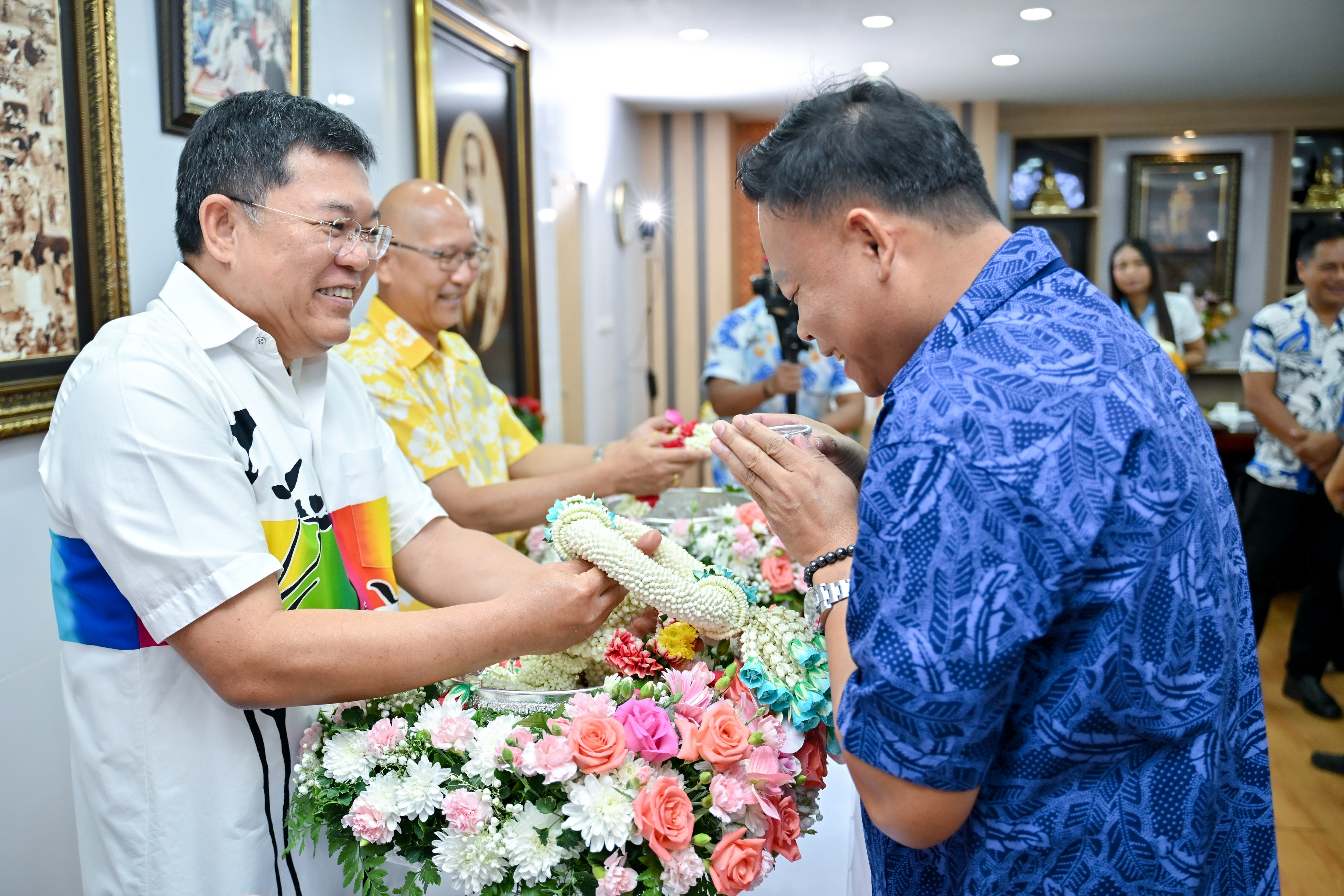 วันศุกร์ที่ 17 เมษายน 2569 เวลา 10.00 น. สำนักงานชลประทานที่ 7 ร่วมสืบสานประเพณีสงกรานต์ ปี 2569 โดยจัดพิธีรดน้ำขอพร นายปริญญา คัชมาตย์ ผู้อำนวยการสำนักงานชลประทานที่ 7 พร้อมด้วย นายเศรษฐพงศ์ ภิงคารวัฒน์ รองผู้อำนวยการสำนักงานชลประทานที่ 7 เนื่องในโอกาสเทศกาลสงกรานต์ประจำปี 2569 เพื่อเป็นการสืบสาน ส่งเสริม อนุรักษ์วัฒนธรรมประเพณีสงกรานต์อันดีงามของไทยที่สืบทอดมาอย่างยาวนาน ตลอดจนเพื่อความเป็นสิริมงคล โดยมี ผู้อำนวยการส่วน ผู้อำนวยการโครงการชลประทานอุบลราชธานี หัวหน้าฝ่าย ข้าราชการ และเจ้าหน้าที่ในสังกัด เข้าร่วมพิธีดังกล่าว เพื่อเป็นการเสริมสร้างความรัก ความสามัคคีในองค์กร สร้างความสัมพันธ์อันดีระหว่างคณะผู้บริหาร และเจ้าหน้าที่ในสังกัด ตลอดจนเป็นการส่งต่อบรรยากาศแห่งความสุข ที่เต็มไปด้วยความอบอุ่น และรอยยิ้ม ในช่วงเทศกาลปีใหม่ไทยให้แก่กันและกันต่อไป ณ ห้องผู้อำนวยการสำนักงานชลประทานที่ 7 อำเภอเมือง จังหวัดอุบลราชธานี