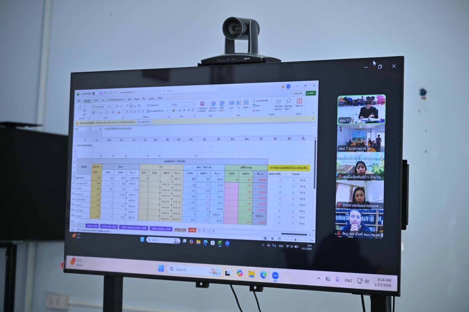 วันศุกร์ที่ 23 มกราคม 2569 เวลา 09.00 น. สำนักงานชลประทานที่ 7 โดย นายปริญญา คัชมาตย์ ผู้อำนวยการสำนักงานชลประทานที่ 7 มอบหมายส่วนบริหารจัดการน้ำและบำรุงรักษา ให้นายพณัฏฐ์ พัฒนนันทพันธ์ หัวหน้าฝ่ายส่งเสริมและพัฒนาการใช้น้ำ และนายปกรณ์ ติระ เจ้าพนักงานการเกษตรปฏิบัติงาน เข้าร่วมประชุมหารือข้อมูลปริมาณการผลิตพืชเศรษฐกิจ ครั้งที่ 2/2569 ผ่านระบบ Zoom Meeting จากห้องประชุมสำนักงานเศรษฐกิจการเกษตรที่ 11 อุบลราชธานี เพื่อร่วมพิจารณาให้ความเห็นชอบและรับรองผลข้อมูลปริมาณการผลิตสินค้าเกษตรพืชเศรษฐกิจที่สำคัญ จำนวน 4 สินค้า ได้แก่ ทุเรียน ลำไย ข้าวนาปรัง มันสำปะหลังโรงงาน เพื่อจัดทำข้อมูลปริมาณการผลิตสินค้าเกษตรพืชเศรษฐกิจที่สำคัญ และเสนอต่อคณะทำงานพัฒนาคุณภาพข้อมูลปริมาณการผลิตสินค้าเกษตรด้านพืช ภาคตะวันออกเฉียงเหนือ ให้เป็นไปอย่างมีระบบและถูกต้องมากที่สุด ณ ห้องประชุมโทรมาตร สำนักงานชลประทานที่ 7 อำเภอเมือง จังหวัดอุบลราชธานี