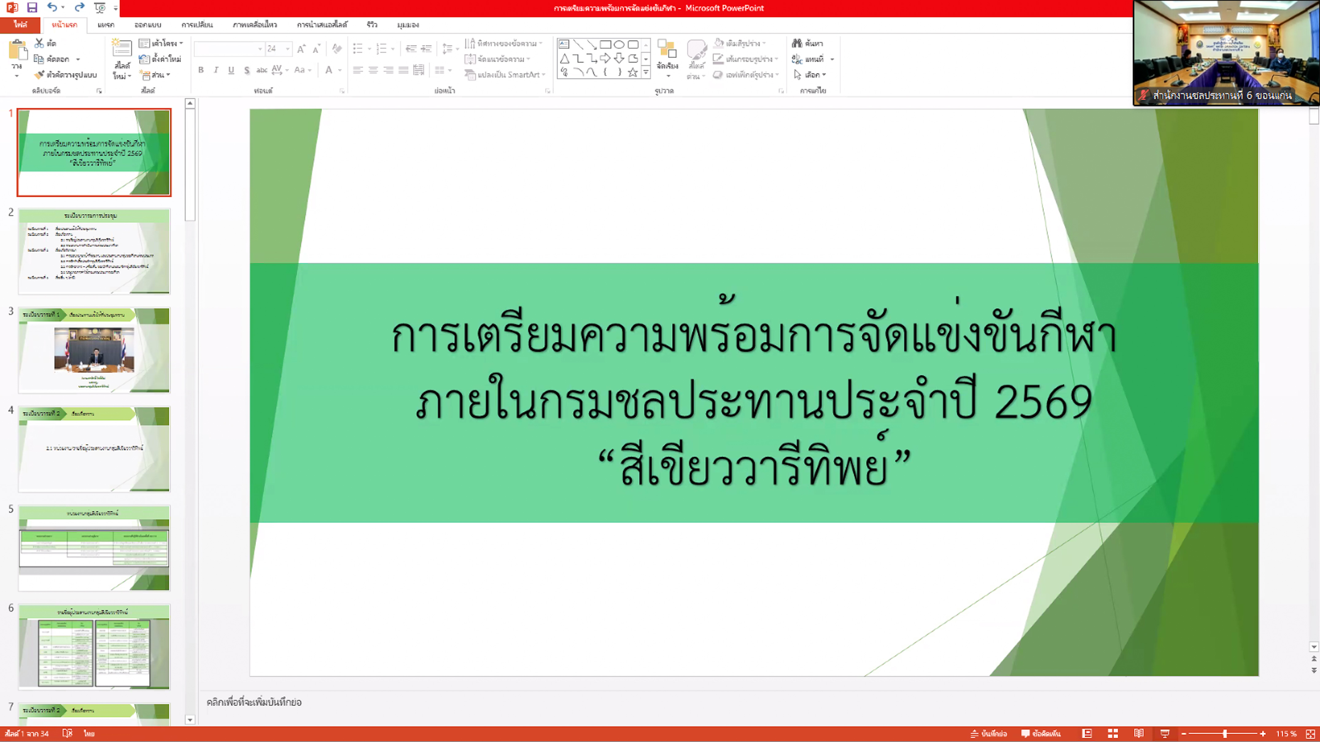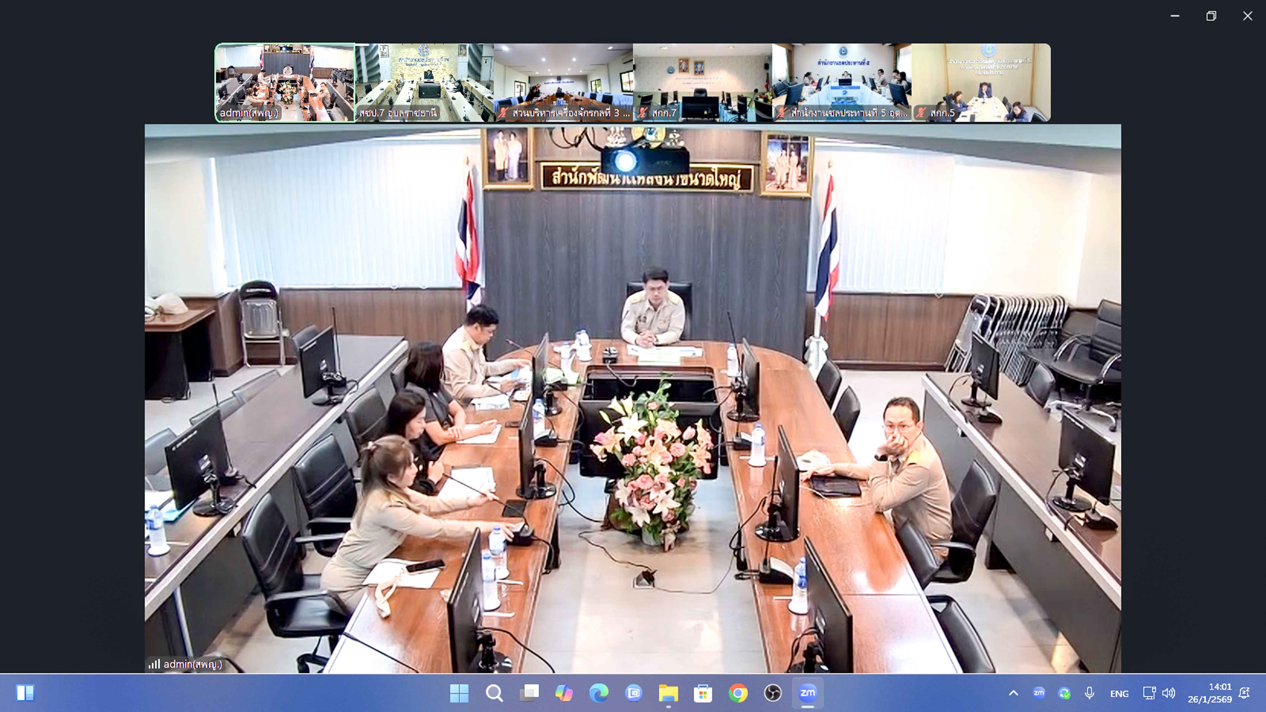 วันจันทร์ที่ 26 มกราคม 2569 เวลา 14.00 น. สำนักงานชลประทานที่ 7 นำโดย นายปริญญา คัชมาตย์ ผู้อำนวยการสำนักงานชลประทานที่ 7 พร้อมด้วย นายเศรษฐพงศ์ ภิงคารวัฒน์ รองผู้อำนวยการสำนักงานชลประทานที่ 7 นางกัลยารัตน์ ปานดำ ผู้อำนวยการส่วนบริหารทั่วไป นางสาวธิดารัตน์ จิตรเจริญ หัวหน้าฝ่ายบริหารบุคคลและสวัสดิการ และเจ้าหน้าที่ผู้เกี่ยวข้อง เข้าร่วมประชุมการเตรียมความพร้อมการจัดแข่งขันกีฬาภายในกรมชลประทานประจำปี 2569 “ สีเขียววารีทิพย์ ” ผ่านระบบ Zoom Meeting จากห้องประชุมสุวรรณภูมิ สำนักพัฒนาแหล่งน้ำขนาดใหญ่ ชั้น 4 อาคารที่ทำการฝ่ายวิชาการ กรมชลประทาน สามเสน กรุงเทพฯ โดยมี นายเศกสิทธิ์ โพธิ์ชัย ผู้อำนวยการสำนักพัฒนาแหล่งน้ำขนาดใหญ่ เป็นประธานการประชุมฯ เพื่อพิจารณารูปแบบการจัดงาน และมอบหมายหน้าที่การเตรียมงานสำหรับการจัดการแข่งขันกีฬาภายในกรมชลประทานประจำปี 2569 ให้เป็นไปด้วยความเรียบร้อยต่อไป ณ ห้องประชุมอาคารศูนย์ปฏิบัติการน้ำอัจฉริยะ (SWOC 7) สำนักงานชลประทานที่ 7 อำเภอเมือง จังหวัดอุบลราชธานี