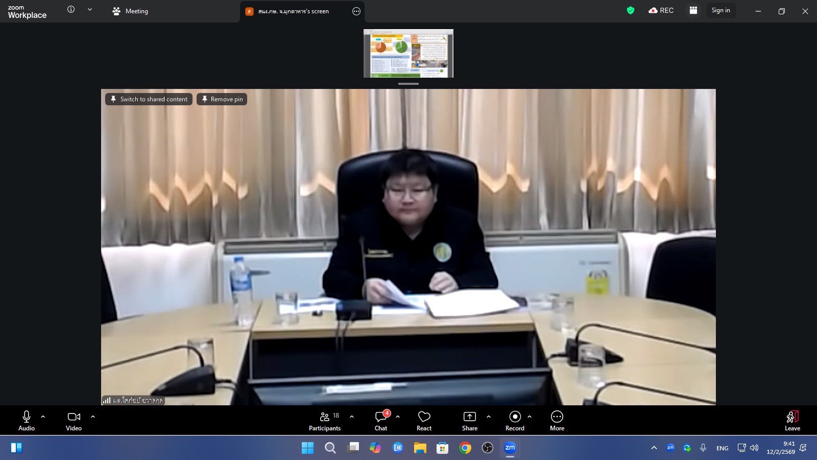 วันพฤหัสบดีที่ 12 กุมภาพันธ์ 2569 เวลา 09.30 น. สำนักงานชลประทานที่ 7 นำโดย นายปริญญา คัชมาตย์ ผู้อำนวยการสำนักงานชลประทานที่ 7 พร้อมด้วย นายเศรษฐพงศ์ ภิงคารวัฒน์ รองผู้อำนวยการสำนักงานชลประทานที่ 7 นายวุฒิชัย ศรีทอง ผู้อำนวยการส่วนบริหารจัดการน้ำและบำรุงรักษา หัวหน้าฝ่าย และเจ้าหน้าที่ผู้เกี่ยวข้อง เข้าร่วมประชุมตรวจติดตามความก้าวหน้าผลการดำเนินงานตามแผนการตรวจราชการ ของผู้ตรวจราชการกระทรวงเกษตรและสหกรณ์ ประจำปีงบประมาณ พ.ศ. 2569 รอบที่ 1 ในเขตตรวจราชการที่ 11 (จังหวัดสกลนคร นครพนม มุกดาหาร) ผ่านระบบ Zoom Meeting จากห้องประชุมสำนักตรวจราชการกระทรวงเกษตรและสหกรณ์ ห้อง 1403 โดยมี นายโสภัชย์ ชวาลกุล ผู้ตรวจราชการกระทรวงเกษตรและสหกรณ์ เขต 11 เป็นประธานในการประชุม เพื่อร่วมรับฟังการตรวจติดตามความก้าวหน้าผลการดำเนินงานโครงการตามแผนการตรวจราชการของผู้ตรวจราชการกระทรวงเกษตรและสหกรณ์ ประจำปีงบประมาณ พ.ศ. 2569 รอบที่ 1 ในเขตตรวจราชการที่ 11 พื้นที่จังหวัดมุกดาหาร รวมทั้งพิจารณาประเด็นการตรวจราชการตามนโยบายสำคัญของกระทรวงเกษตรและสหกรณ์ โดยให้หน่วยงานที่เกี่ยวข้อง รายงานความก้าวหน้า ปัญหาอุปสรรค และแนวทางการแก้ไข เพื่อให้การดำเนินงานเป็นไปอย่างมีประสิทธิภาพ และบรรลุเป้าหมายตามที่กระทรวงฯ กำหนดไว้ต่อไป ณ ห้องประชุมอาคารศูนย์ปฏิบัติการน้ำอัจฉริยะ (SWOC 7) สำนักงานชลประทานที่ 7 อำเภอเมือง จังหวัดอุบลราชธานี